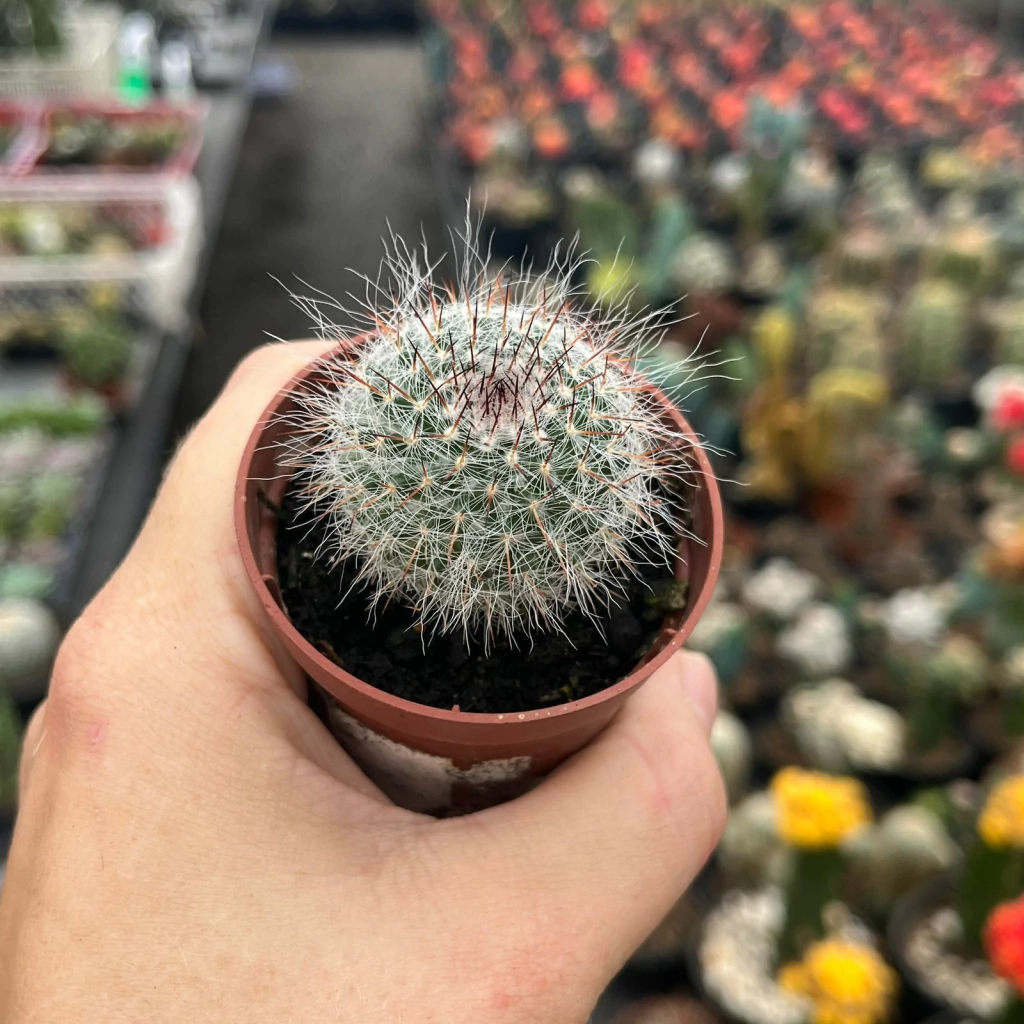 A Mammillaria Hahniana, também conhecida como cacto bola, é uma planta encantadora que traz um toque especial ao seu ambiente. Com seus espinhos brancos que contrastam com o verde vibrante, este cacto é ideal para quem busca uma decoração diferenciada.